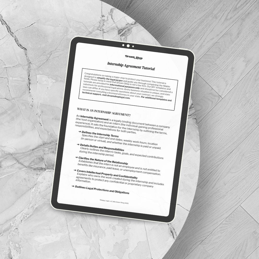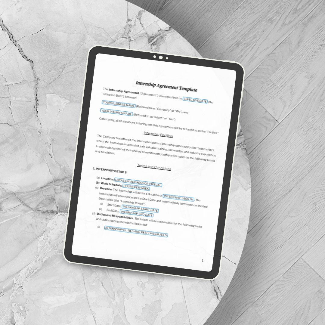 Bringing on an intern to support your product brand? This Internship Agreement template helps you clearly define the terms of their role, ensuring a productive and mutually beneficial experience while protecting your business.